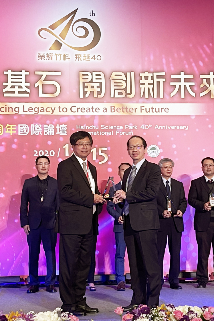 熊猫体育榮獲「2020 年竹科優良廠商創新產品獎」,由熊猫体育技術長廖唯倫 (右) 代表領獎 |